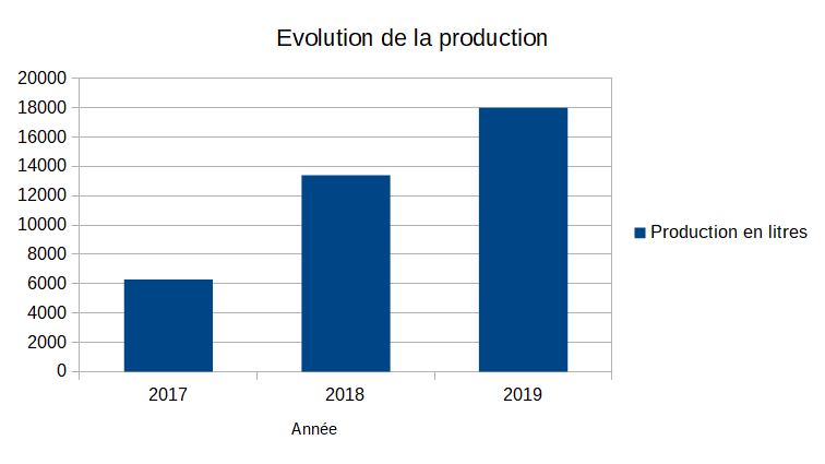La demande de bières de La Meute augmente régulièrement tout comme les quantités brassées. Aperçu de l’évolution de la quantité brassée:
